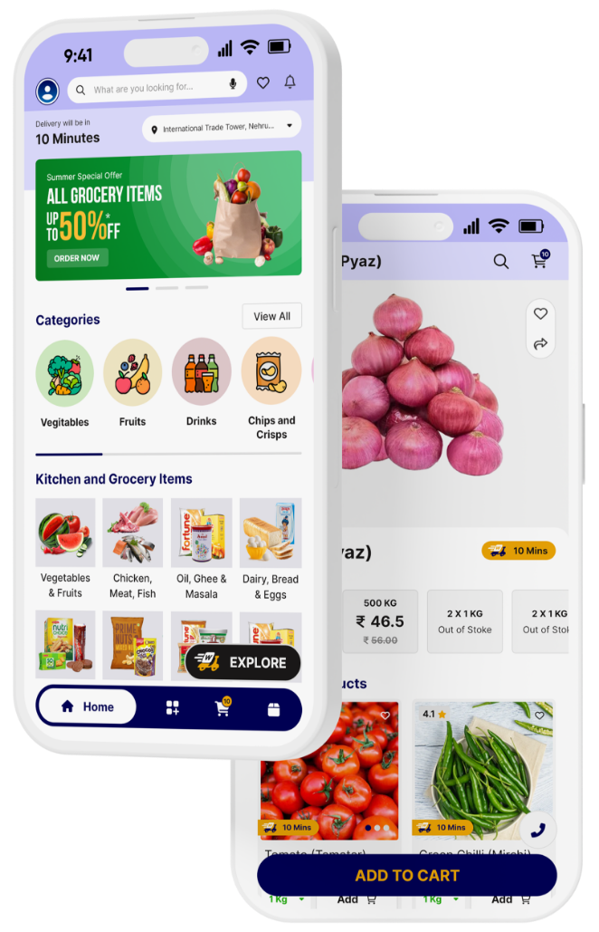 Your go-to app for grocery shopping made simple and speedy! We believe in delivering fresh, high-quality groceries right to your doorstep in no time.
